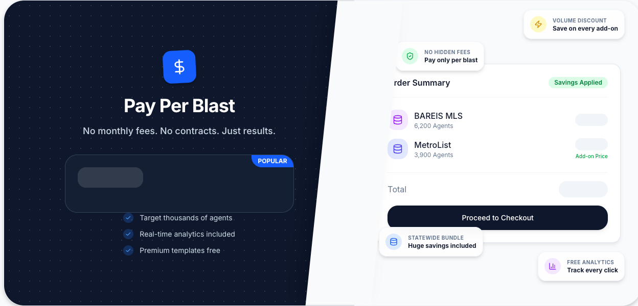 Pay per blast or subscribe for volume discounts. No hidden fees, no contracts.